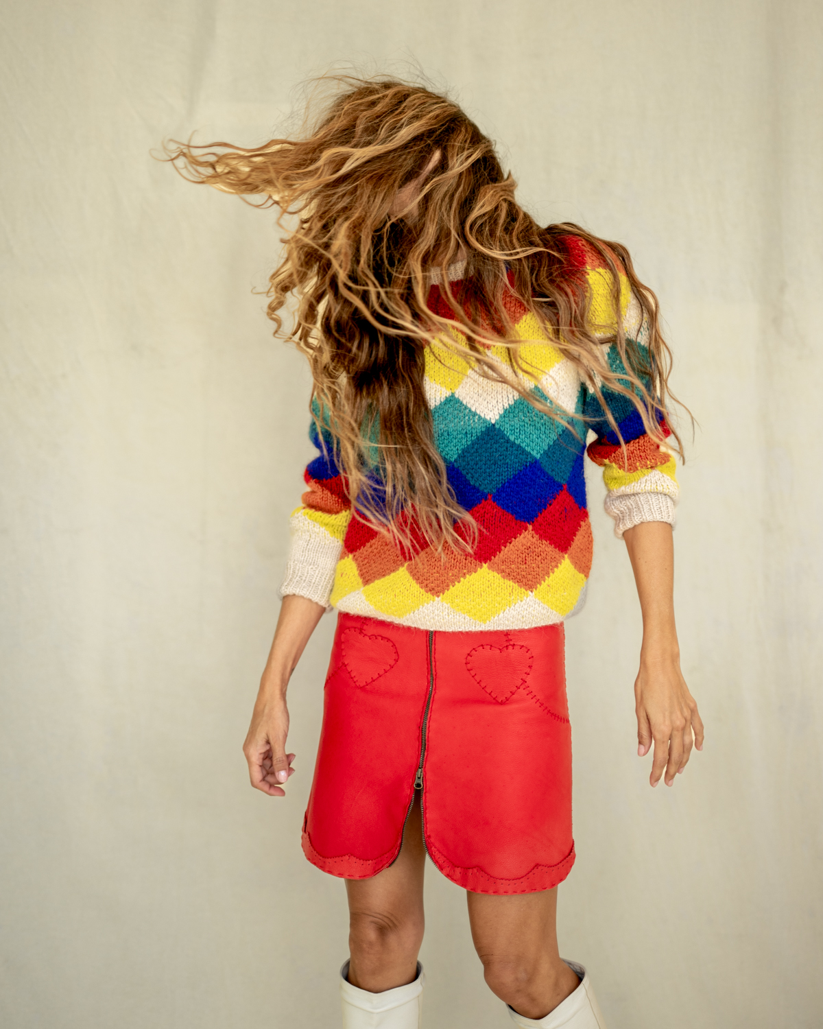 Handknited in merino wool this our most colorful sweater, inspired in the Bolivia alternative flag call Wiphala which represents the colors of the natives of the Andes and the four regions of the Inca Empire.