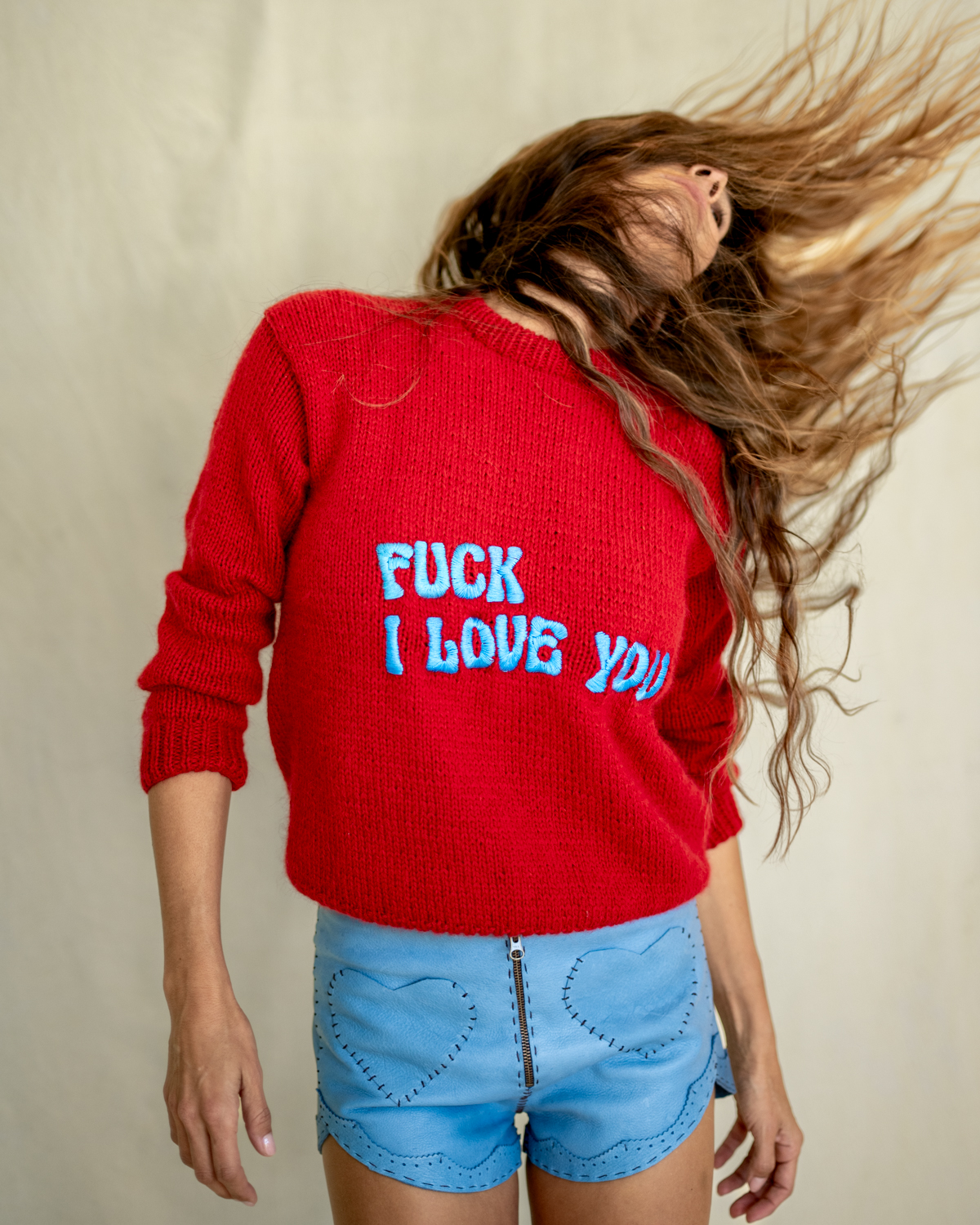 Hand knitted sweater in merino wool , designed with our partner brand Fuck I Love you logo.